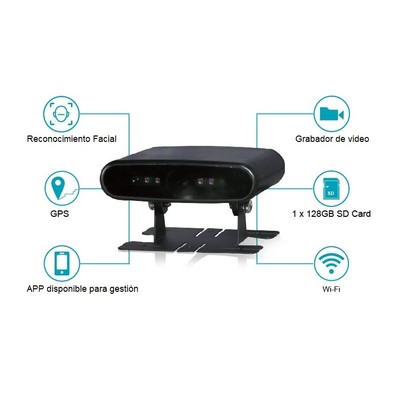 Detector de fatiga del condutor, detecta parpadeo por cansancio, distracción, hablar por celular, humo y masacariila cuando sea necesario. Capacidad de almacenar video y transmitir a distancia a través de un DVR